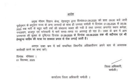 केदारनाथ यात्रा पर 3 सितंबर तक लगी रोक। रूद्रप्रयाग। जनपद में हो रही लगातार बारिश और मौसम विभाग द्वारा अगले तीन दिनों...