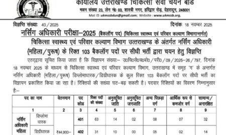 स्वास्थ्य विभाग में 103 नर्सिंग अधिकारी व 30 डेंटल हाईजिनिस्ट की भर्ती शुरू देहरादून। स्वास्थ्य एवं परिवार कल्याण विभाग को शीघ्र ही...