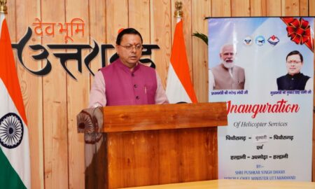 पिथौरागढ़-मुनस्यारी, हल्द्वानी-अल्मोड़ा हेली सेवाओं का मुख्यमंत्री ने किया शुभारंभ दूरस्थ क्षेत्रों में आम नागरिकों को सुगम परिवहन होगा उपलब्ध : मुख्यमंत्री राज्य...