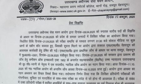 उत्तराखंड अधीनस्थ सेवा चयन आयोग की स्नातक स्तरीय परीक्षा रद्द, 3 माह बाद फिर होगा इम्तिहान देहरादून। उत्तराखंड अधीनस्थ सेवा चयन आयोग...