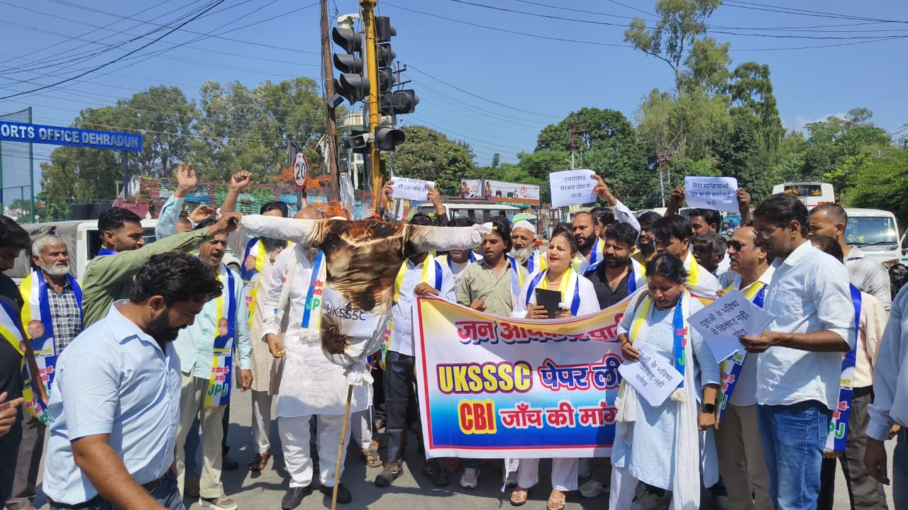 देहरादून। उत्तराखंड में भर्ती परीक्षाओं में धांधली और पेपर लीक मामले को लेकर विपक्ष और छात्र संगठनों का आक्रोश लगातार बढ़ता जा रहा है। इसी कड़ी में जन अधिकार पार्टी के राष्ट्रीय अध्यक्ष आज़ाद अली ने सख्त बयान देते हुए राज्य सरकार और मुख्यमंत्री को सीधे कटघरे में खड़ा किया है। उन्होंने कहा कि भाजपा सरकार युवाओं के भविष्य से खिलवाड़ कर रही है और अपनी नाकामियों को छिपाने के लिए “नकल जिहाद” जैसे शब्दों का सहारा ले रही है। इस दौरान उन्होंने सीबीआई जांच ना करने पर लैंसडाउन चौक पर सरकार का पुतला दहन किया।