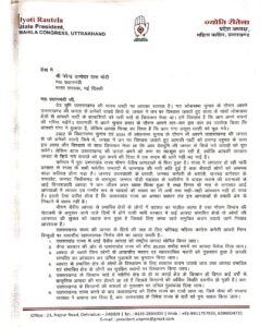 देहरादून। उत्तराखण्ड महिला कांग्रेस की प्रदेश अध्यक्ष ज्योति रौतेला ने प्रधानमंत्री नरेन्द्र मोदी के राज्य आगमन पर आपदा राहत और राज्यहित से जुड़े कई मुद्दों को लेकर ठोस हस्तक्षेप की मांग की है। इस संबंध में उन्होंने जिलाधिकारी को पत्र लिखकर प्रधानमंत्री से मिलने का समय मांगा है।