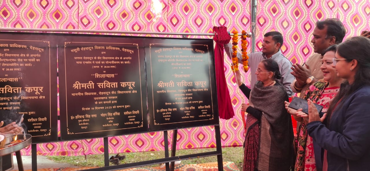 कैंट विधानसभा क्षेत्र अंतर्गत विभिन्न स्थानों पर कराए गए कार्यों का लोकार्पण आज विधायक देहरादून कैंट सविता कपूर द्वारा विधिवत रूप से किया गया। यह कार्यक्रम क्षेत्र में हरित वातावरण को बढ़ावा देने तथा नागरिकों को बेहतर सार्वजनिक सुविधाएं उपलब्ध कराने की दिशा में एक महत्वपूर्ण पहल है। देहरादून कैंट विधानसभा क्षेत्र में साईंलोक कॉलोनी (जीएमएस रोड) में पार्क सौंदर्यीकरण कार्य (लागत ₹20.68 लाख), इन्द्रप्रस्थ कॉलोनी (जीएमएस रोड) में पार्क सौंदर्यीकरण कार्य (लागत ₹28.94 लाख) तथा माया एन्क्लेव में पार्क सौंदर्यीकरण कार्य (लागत ₹20.84 लाख) का लोकार्पण किया गया। परियोजनाओं के अंतर्गत हरियाली का विस्तार, आकर्षक लैंडस्केपिंग, बैठने की व्यवस्था, पैदल पथ, आधुनिक प्रकाश व्यवस्था और बच्चों के लिए सुरक्षित खेल सुविधाएं विकसित की गई हैं।