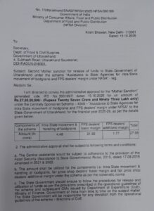 खाद्य, नागरिक आपूर्ति एवं उपभोक्ता मामले की मंत्री रेखा आर्या ने बताया कि प्रदेश को यह धनराशि प्राप्त हो चुकी है और विभाग को निर्देश दिए गए हैं कि इसमें राज्य का हिस्सा जोड़कर शीघ्र ही राशन विक्रेताओं को भुगतान किया जाए।