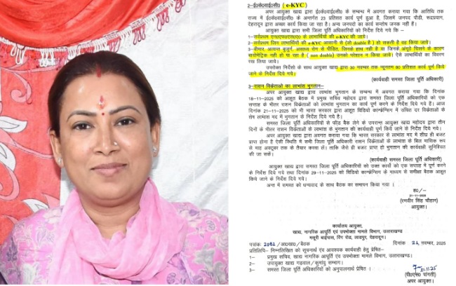 कैबिनेट मंत्री रेखा आर्या ने विभागीय अधिकारियों को इन कारणों के चलते ई केवाईसी न हो पाने पर राशन वितरण व्यवस्था में शिथिलता बरतने के निर्देश दिए थे। इसके बाद खाद्य आयुक्त की ओर से शनिवार को सभी जिला पूर्ति अधिकारियों को निर्देशित किया गया है कि ऐसे मामलों में राशन वितरण नहीं रोका जाएगा। ऐसे परिवारों की ई केवाईसी करने के लिए उन्हें अतिरिक्त समय दिया जाएगा।