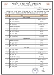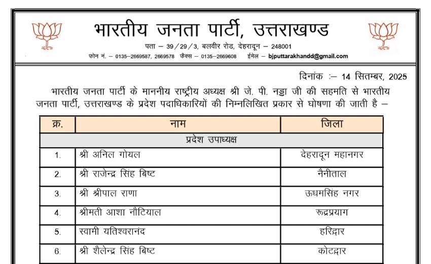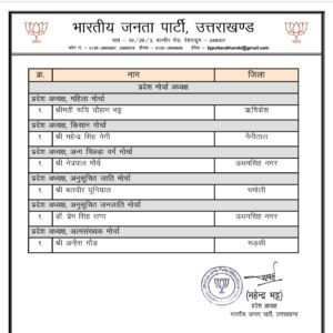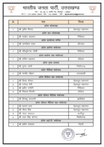 देहरादून। भाजपा ने प्रदेश पदाधिकारियों की घोषणा कर दी है।