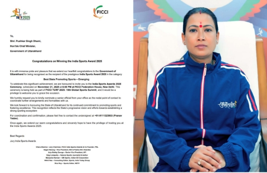 - उत्तराखंड को “FICCI द्वारा आयोजित ‘इंडिया स्पोर्ट्स अवार्ड 2025’ में सर्वश्रेष्ठ उभरता राज्य का खिताब