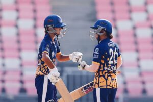 सिर्फ 100 रनों के लक्ष्य का पीछा करने उतरी टिहरी क्वीन्स ने आत्मविश्वास के साथ शुरुआत की। इम्पैक्ट सब्स्टीट्यूट के रूप में आईं मेघा सैनी ने मोर्चा संभाला और मैदान के चारों ओर तेज़ तर्रार शॉट्स लगाए। ओपनर आरती भंडारी (33 रन) के रन आउट होने के बावजूद, मेघा ने अपनी आक्रामक बल्लेबाज़ी जारी रखी। उन्होंने सिर्फ 32 गेंदों में अपना अर्धशतक पूरा किया, जिसमें अंकिता शाह के एक ओवर में तीन चौके भी शामिल थे।